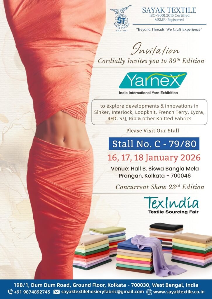Sayak Textile Showcases Premium Hosiery Knitted Fabrics at Yarnex TexIndia Exhibition Kolkata